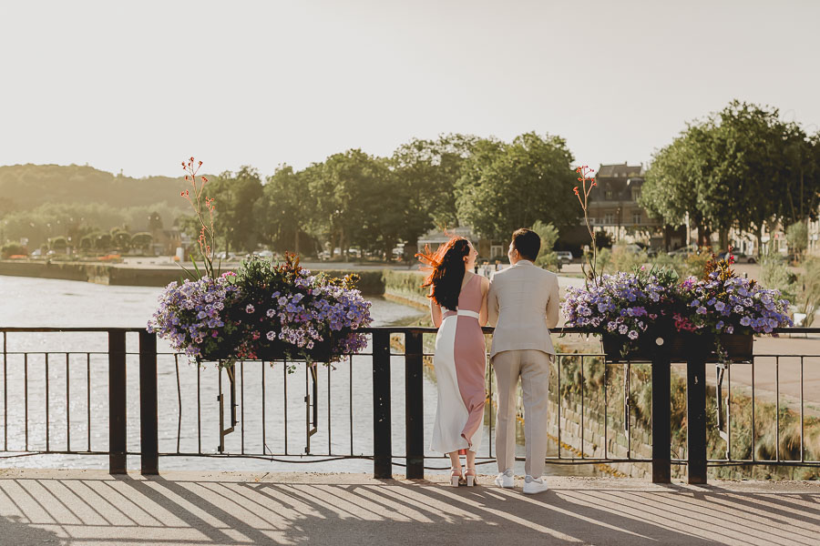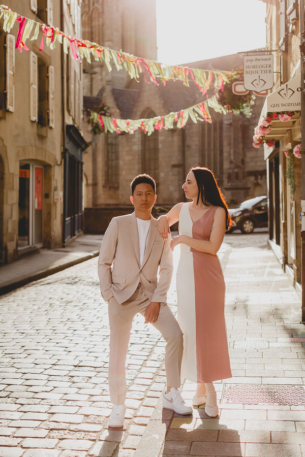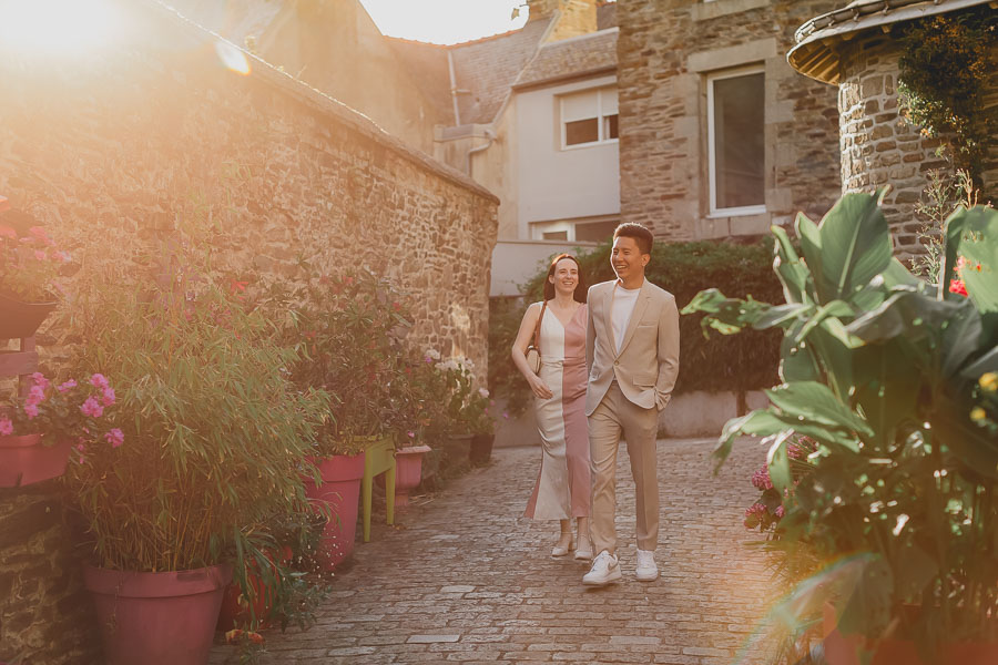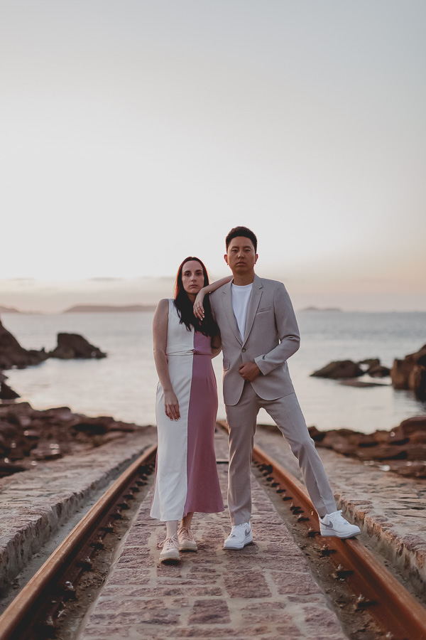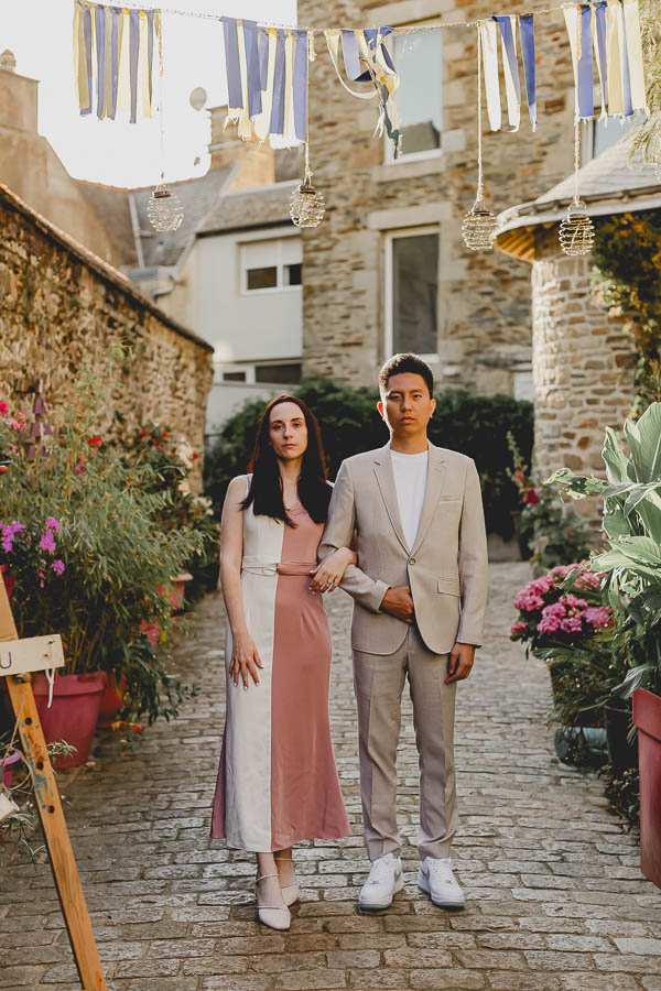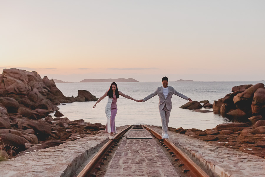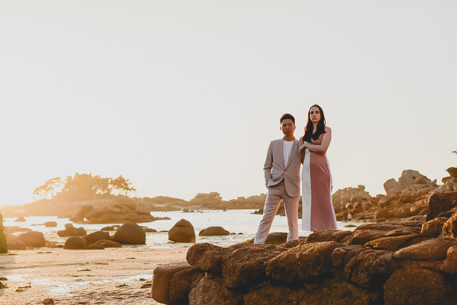 Ce couple, aux cultures différentes — elle française, lui taïwanais — souhaitait immortaliser leurs noces à travers une séance photo qui leur ressemble vraiment. Leur envie était claire : des images urbaines et en bord de mer, avec une vraie touche éditoriale, avec l’envie de créer des images modernes, fortes, ancrées dans l’authenticité des paysages bretons. Des photos posées, affirmées, mais aussi des moments plus naturels, spontanés, pris sur le vif.
