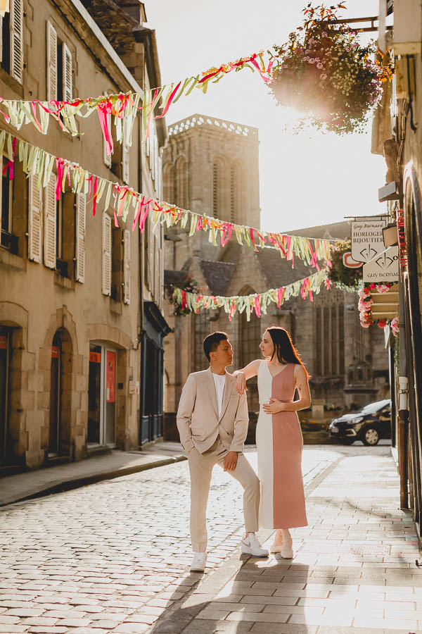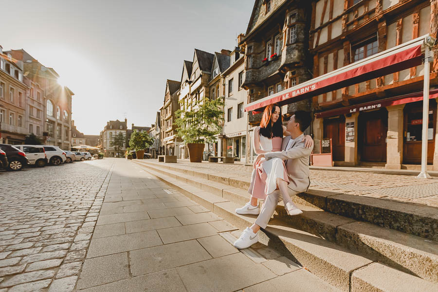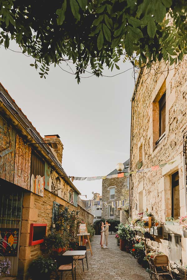 Grâce à un repérage réalisé en amont, nous avons ensuite pris le temps de nous balader dans le centre-ville. Lannion est une ville incroyablement fleurie, authentique, avec beaucoup de caractère. Des ruelles pittoresques, de magnifiques maisons anciennes à colombages, une place centrale totalement baignée de lumière.