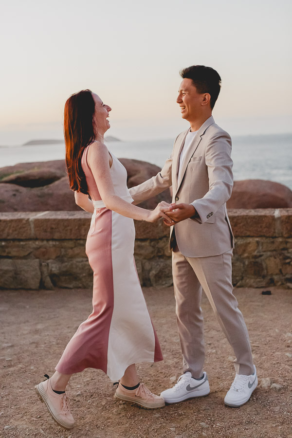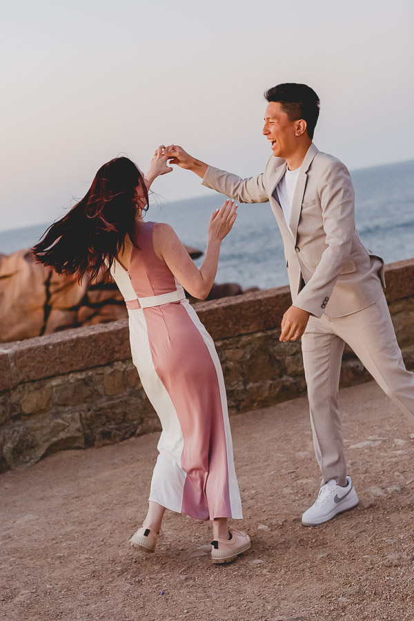 Ils ont dansé au pied du phare, ri, profité du moment, admiré le paysage. On a pris le temps de laisser la séance vivre, sans la brusquer.